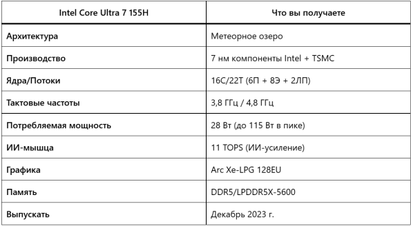 Выбирайте Intel Core Ultra 7 155H, если вам нужна большая совместимость с программным обеспечением, максимальное количество ядер процессора для различных задач или гарантированная стабильность платформы. Зрелая экосистема и гибридная архитектура отлично справляются с рутинными компьютерными задачами.